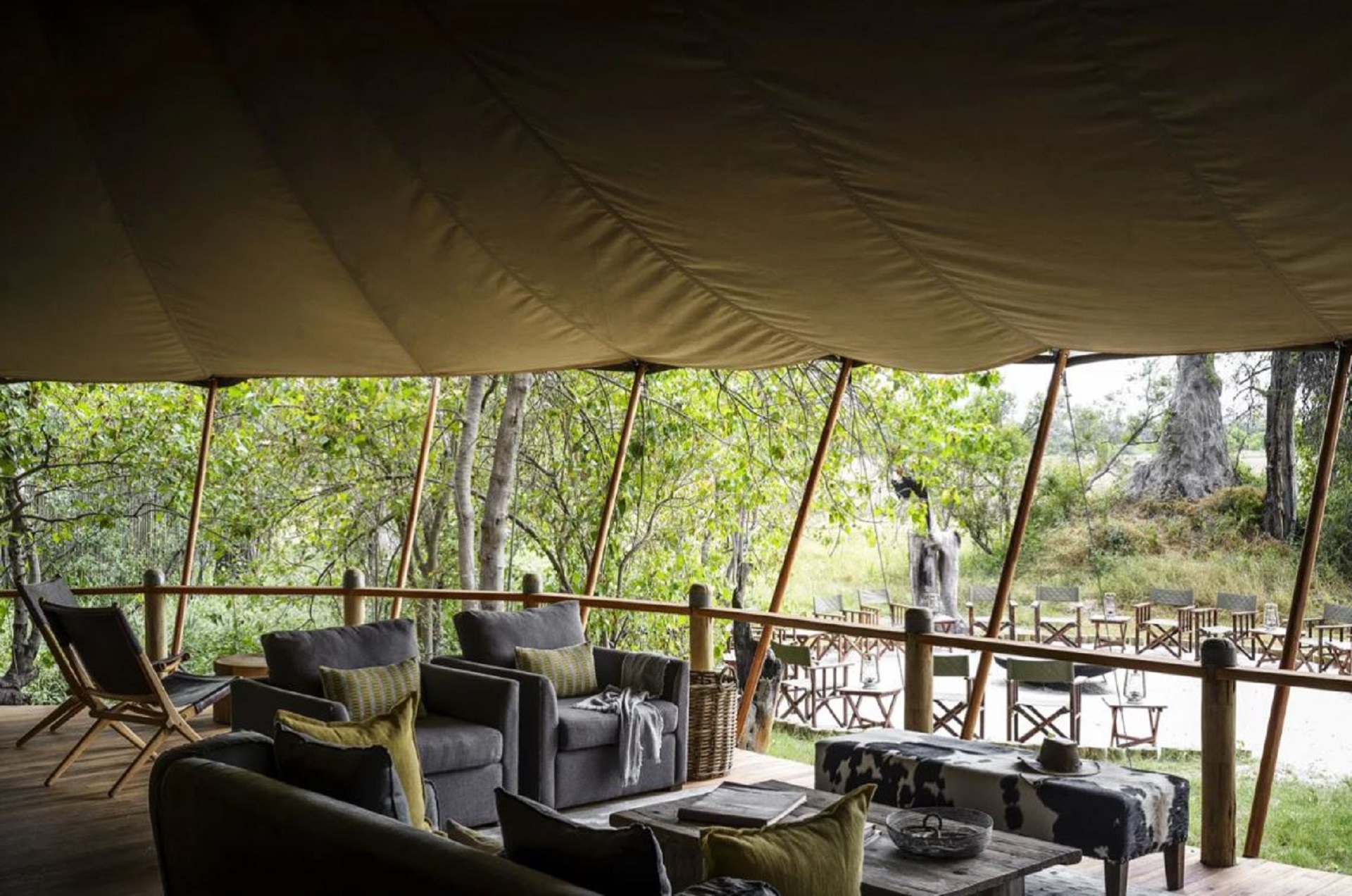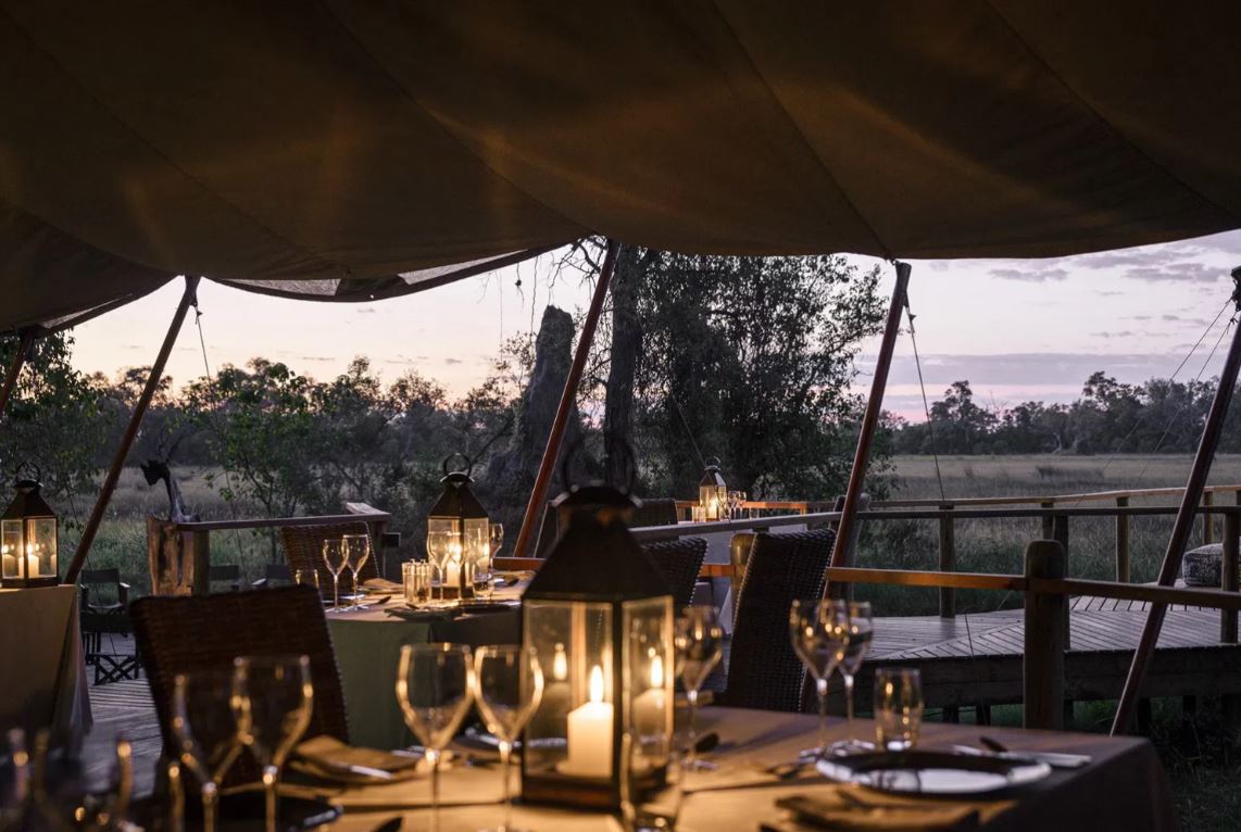 Set in an amphitheatre of Ebony and Sausage Trees on the southern tip of Chief's Island, in 260,000 acres of untamed African bush, Stanley's Camp accommodates only 16 visitors. Bordering the southern section of the famous Moremi Game Reserve this private concession is located by definition in seasonal delta. The flood waters arrive in June, though there is often navigable water all year round due to the presence of the Mboro River. The beautifully-appointed tents evoke an atmosphere of "classic Africa," with hand-crafted beds, antique furniture and oriental carpets combining to create surroundings of colonial-era luxury.